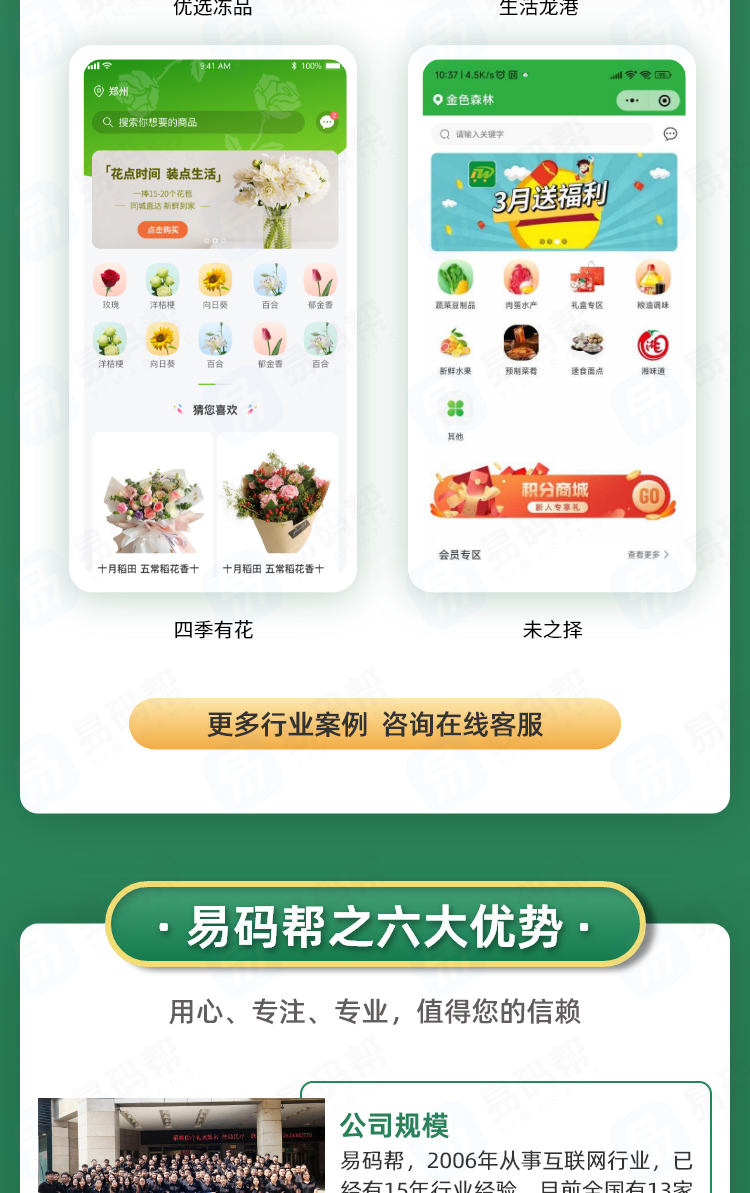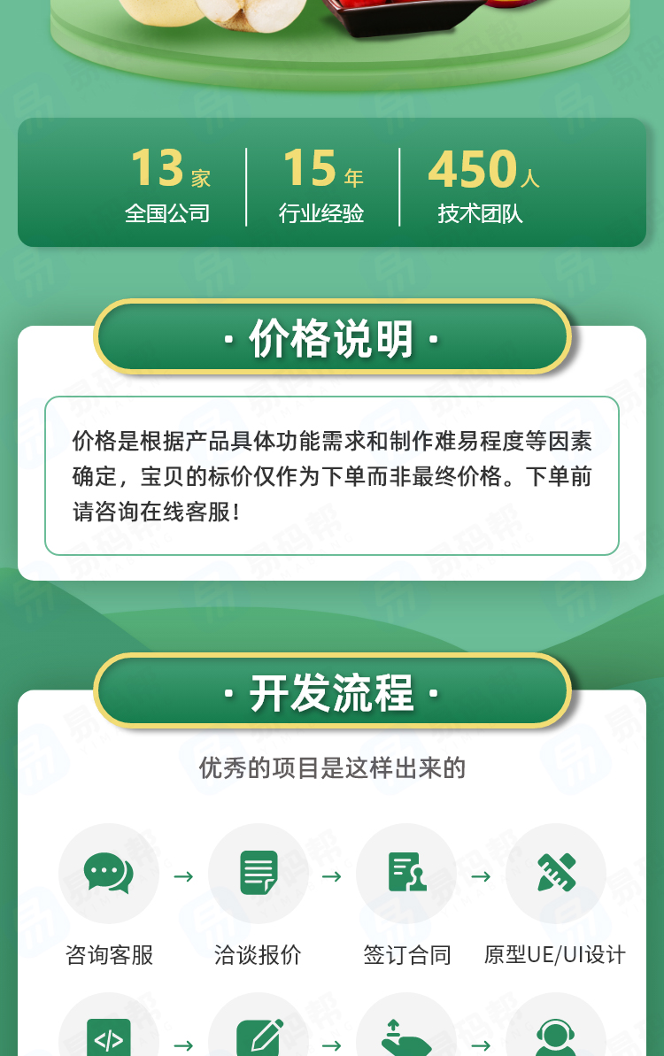 电商营销系统、ERP、OA、CRM系统及聚合的中台系统、在线教育系统,物联网自动化产品等成品销售以及定制化开发