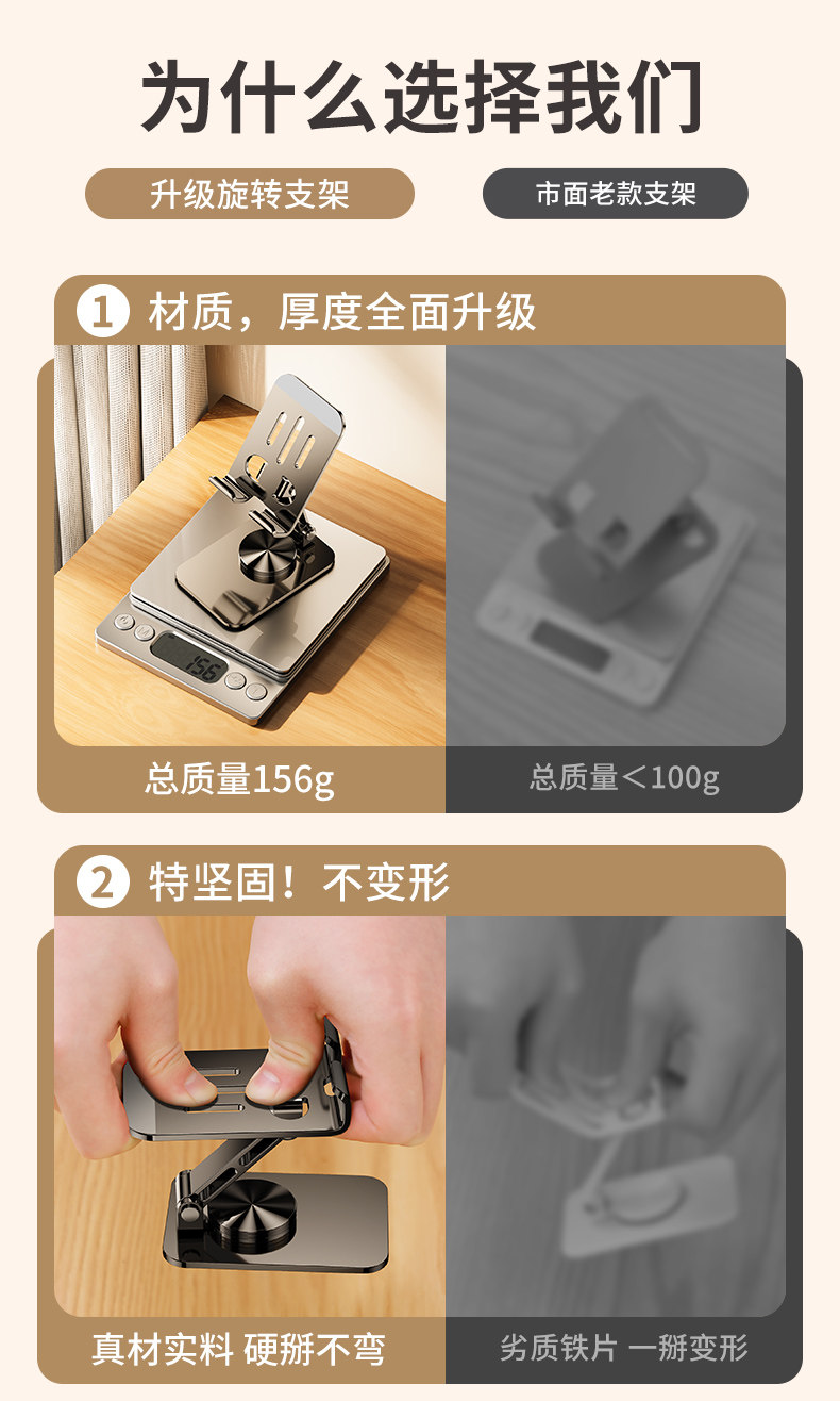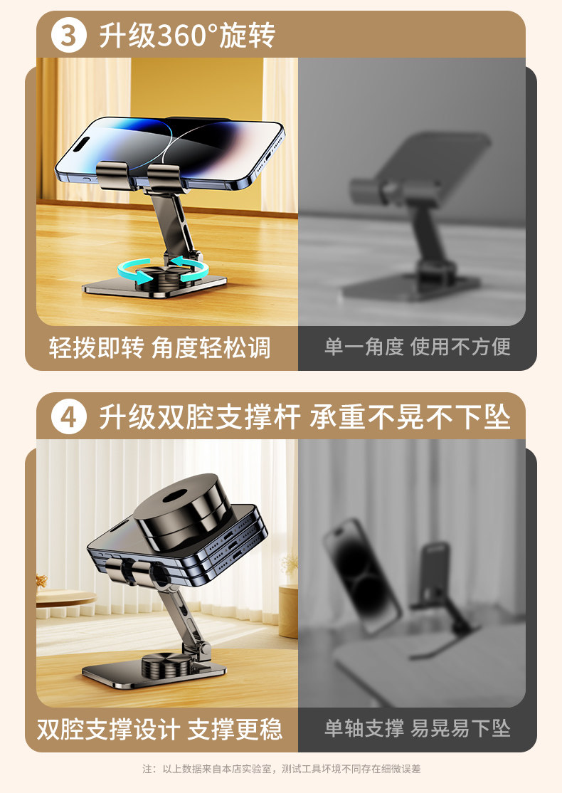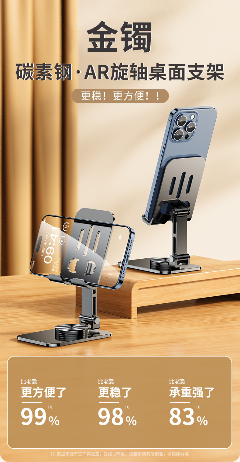 【全合金】手机支架桌面直播网课拍摄专用平板iPad支撑架360度旋转万能通用可升降折叠便携床上懒人手机架子