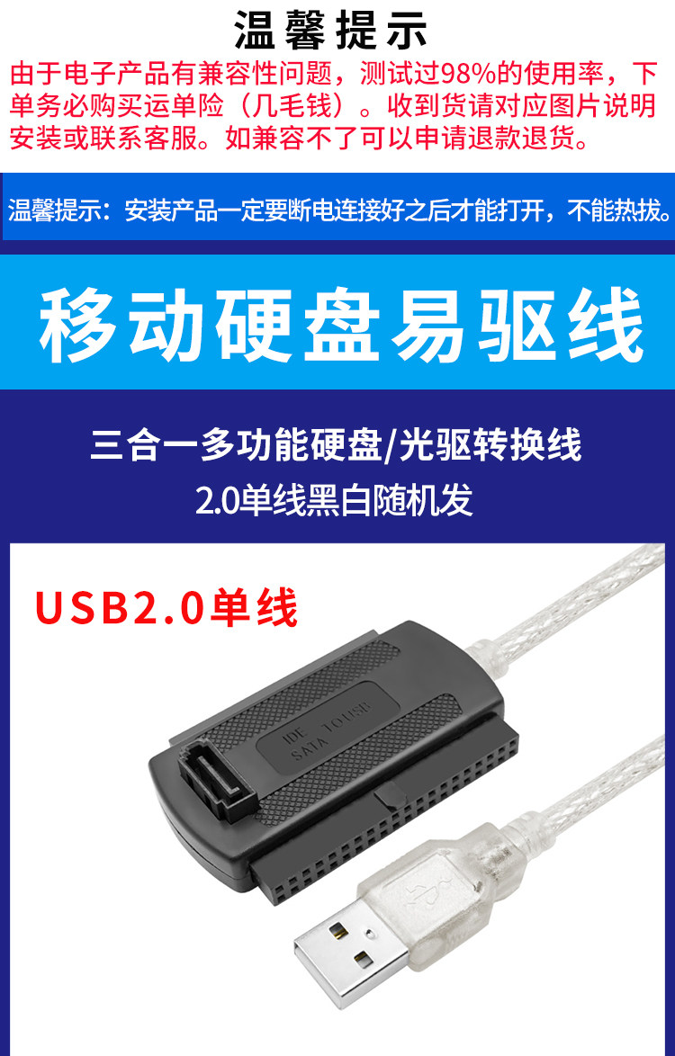 USB转IDE硬盘 USB转SATA转换转接器串口并口光驱易驱线外接带电源
