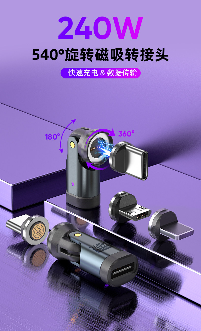 540度旋转240w快充磁吸转接头type c安卓lightning三...¥22.00